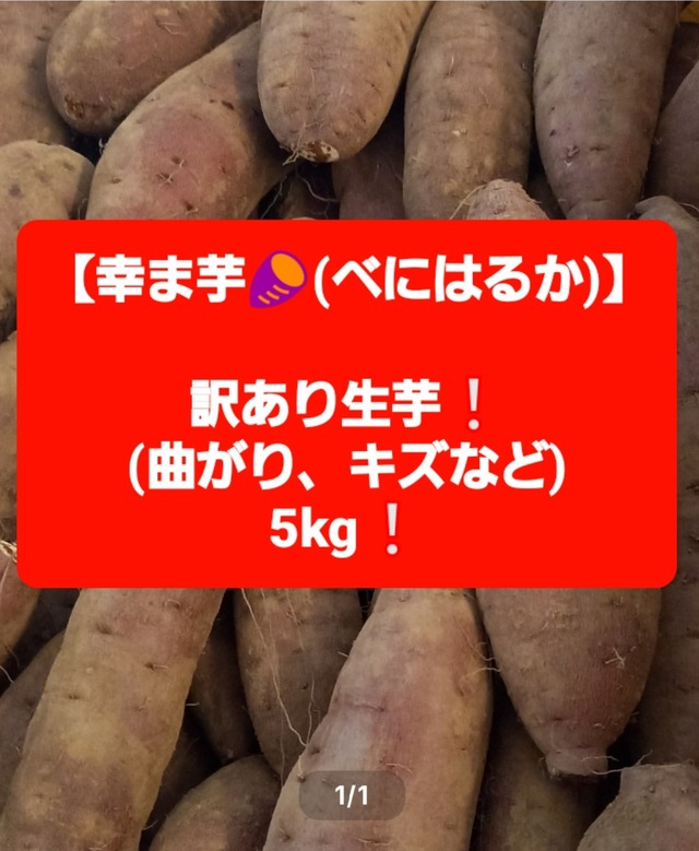 生芋訳あり 5kg❗ 長野県駒ケ根市産 訳あり(キズあり曲がりサイズバラバラなど) 定温定湿【幸ま芋(べにはるか)】生芋約5kg 【よっしーのお芋屋さん】直伝の焼き方レシピ付き ご注文から一週間以内に出荷となります。 ご了承くださいませ。 到着したさつまいもは、早めに焼いて冷凍保存を オススメいたします。 到着日に必ず確認していただいて、 万が一腐りなどある場合は、ご連絡くださいませ。